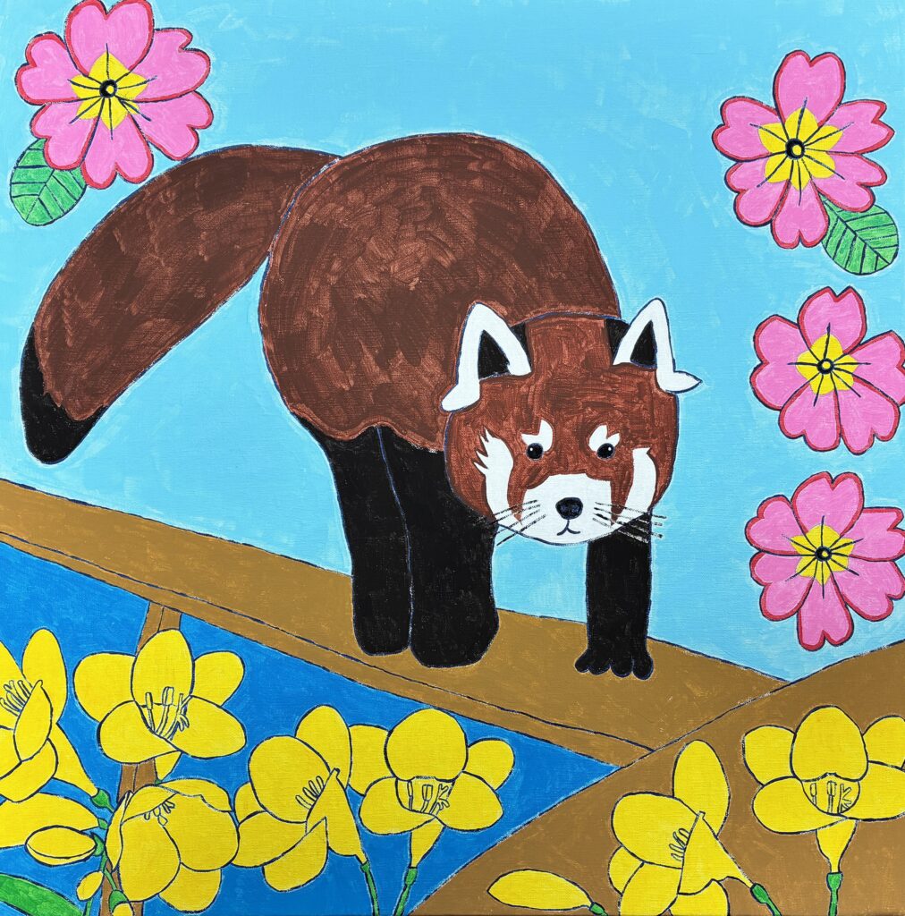 AK016M レッサーパンダとプリムローズとフリージア